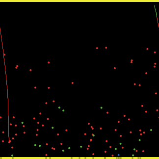 Because of the influence of gravity, the particles follow curved paths. Since NetLogo models time in discrete steps, these curved paths must be approximated with a series of short straight lines. This is the source of a slight inaccuracy where the particles gradually lose energy if the model runs for a long time. (The effect is as though the collisions with the ground were slightly inelastic.) The inaccuracy can be reduced by increasing vsplit, but the model will run slower.