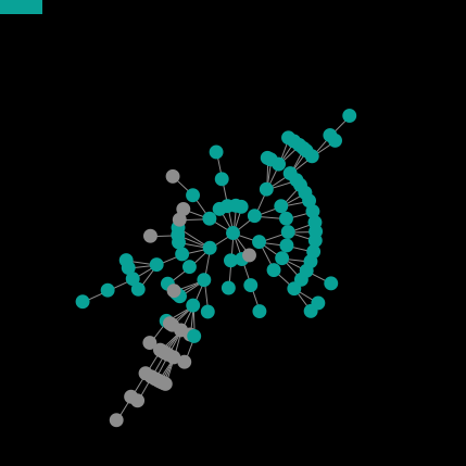 • The spring? chooser controls whether the network layout updates like a spring. This means links act as springs, pushing nodes away that are too close and pulling nodes closer that are too far away. If spring? is turned off, a static layout can be chosen at any time by pressing the layout button on the top of the screen.