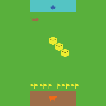breed [ Jogador ] breed [ capim ] breed [ obstacles ] breed [ Inimigo ] breed [ Bandeira ] breed [caixa] breed [extra] breed [boss] globals [ name level score nextLevel lives aux aux3 maiorscore ] breed [frame frames] to setup ;; (for this model to work with NetLogo's new plotting features, ;; __clear-all-and-reset-ticks should be replaced with clear-all at ;; the beginning of your setup procedure and reset-ticks at the end ;; of the procedure.) __clear-all-and-reset-ticks set level 1 set nextLevel 10 set score 0 set lives 3 set aux 16 set aux3 1 set maiorscore 0 ask patches [ set pcolor green ] ask patches with [ pxcor > -8 and pxcor < 8 and pycor > 13 ] [ set pcolor cyan ] ask patches with [ pxcor > -8 and pxcor < 8 and pycor < -12 ] [ set pcolor brown ] create-capim 1 [ set shape "leaf" set size 2 set color blue setxy 0 max-pycor - 2 ] create-Jogador 1 [ set shape "cow" set size 3 set color orange setxy 0 min-pycor + 2 ] create-Inimigo 1 [ set shape "bug" setxy 0 max-pycor - 6 set size 3 set color brown set heading 90 ] create-Bandeira 1 [ set shape "flag" setxy 2 max-pycor - 28 set size 2 set color yellow set heading 90 ] create-Bandeira 2 [ set shape "flag" setxy 3.5 max-pycor - 28 set size 2 set color yellow set heading 90 ] create-Bandeira 3 [ set shape "flag" setxy 5 max-pycor - 28 set size 2 set color yellow set heading 90 ] create-Bandeira 4 [ set shape "flag" setxy 6.5 max-pycor - 28 set size 2 set color yellow set heading 90 ] create-Bandeira 5 [ set shape "flag" setxy 8 max-pycor - 28 set size 2 set color yellow set heading 90 ] create-Bandeira 6 [ set shape "flag" setxy -1 max-pycor - 28 set size 2 set color yellow set heading 90 ] create-Bandeira 7 [ set shape "flag" setxy -2.5 max-pycor - 28 set size 2 set color yellow set heading 90 ] create-Bandeira 8 [ set shape "flag" setxy -4 max-pycor - 28 set size 2 set color yellow set heading 90 ] create-Bandeira 9 [ set shape "flag" setxy -5.5 max-pycor - 28 set size 2 set color yellow set heading 90 ] create-Bandeira 10 [ set shape "flag" setxy -7 max-pycor - 28 set size 2 set color yellow set heading 90 ] create-caixa 1 [ set shape "box" setxy 2 max-pycor - 15 set size 3 set color yellow set heading 90 ] create-caixa 2 [ set shape "box" setxy 4 max-pycor - 17 set size 3 set color yellow set heading 90 ] create-caixa 3 [ set shape "box" setxy 0 max-pycor - 13 set size 3 set color yellow set heading 90 ] end to moveJogador fd (0.2 - (level * 0.01)) ask Jogador with [ any? obstacles-here ] [ set score score - 10 set lives lives - 1 die ] ask Jogador [ bounce ] end to novasformigas create-Inimigo 1 [ set shape "bug" setxy 0 max-pycor - 6 set size 1 set color random color set heading 90 ] end to bigboss create-Inimigo 1 [ set shape "bug" setxy 0 max-pycor - 7 set size 8 set color brown set heading 90 ] end to lab_setup ask patch -1 -1 [ set pcolor black] ask patch 0 -1 [ set pcolor black] ask patch 1 -1 [ set pcolor black] ask patch 2 -1 [ set pcolor black] ask patch 3 -1 [ set pcolor black] ask patch 4 -1 [ set pcolor black] ask patch -1 -2 [ set pcolor black] ask patch -1 -3 [ set pcolor black] ask patch -1 -4 [ set pcolor black] ask patch 0 -4 [ set pcolor black] ask patch 1 -4 [ set pcolor black] ask patch 2 -4 [ set pcolor black] ask patch 3 -4 [ set pcolor black] ask patch 4 -4 [ set pcolor black] ask patch 5 -4 [ set pcolor black] end to bounce if (abs [pxcor] of patch-ahead 1 = max-pxcor) [ set heading (- heading) ] if (abs [pycor] of patch-ahead 1 = max-pycor) [ set heading (180 - heading) ] end to advanceLevel if score >= nextLevel [ set level level + 1 user-message "Voce Subiu de level" ask Jogador [ setxy 0 min-pycor + 2 ] ask Inimigo [ setxy 0 max-pycor - 9 ] ask obstacles [ die ] set nextLevel nextLevel + 10 ] end to InimigoSetup if [pxcor] of patch-ahead 1 = -9 [ set heading (- heading) ] if [pxcor] of patch-ahead 1 = 9 [ facexy -19 11 ] fd 0.3 if level > 1 [ ask Inimigo[intelig] ] end to bossSetup if [pxcor] of patch-ahead 1 = -9 [ set heading (- heading) ] if [pxcor] of patch-ahead 1 = 9 [ facexy -17 11 ] fd 0.1 if level > 1 [ ask boss[intelig] ] end to intelig if aux3 = 1 [set aux aux + 0] if any? Jogador in-radius aux [ set heading (towards min-one-of Jogador [ distance myself]) + random 0.0 if [pxcor] of patch-ahead 1 = -9 [ set heading (- heading) ] if [pxcor] of patch-ahead 1 = 9 [ facexy -19 11 ] ] if [pxcor] of patch-ahead 1 = -9 [ set heading (- heading) ] if [pxcor] of patch-ahead 1 = 9 [ facexy -19 11 ] end to scores if score > maiorscore[ user-message " O Maior score é de: " ] user-message name end to go if name = 0.0 [ set name user-input "Digite Seu Nome:" user-message " Boa Sorte" ] every 0.1 - (level * 0.01) [ ask Inimigo [ InimigoSetup ] ] ask Jogador with [ any? Inimigo-here ] [ set score score - 15 set lives lives - 1 ] ask Jogador with [ any? Inimigo-here ] [ setxy 0 min-pycor + 2 ] if lives < 1 [ user-message "Voce perdeu não tem mais vidas" stop ] ask Inimigo with [ pcolor = brown ] [ set heading (- heading) ] ask Inimigo with [ pcolor = brown ] [ facexy -19 11 ] ask Inimigo with [ pcolor = cyan ] [ set heading (- heading) ] ask Inimigo with [ pcolor = cyan ] [ facexy -19 11 ] ask Inimigo with [ pcolor = black ] [ set heading (- heading) ] ask Inimigo with [ pcolor = black ] [ facexy -19 11 ] ask Inimigo with [ any? Bandeira-here ] [ set heading (- heading) ] ask Inimigo with [ any? Bandeira-here ] [ facexy -19 11 ] ask Inimigo with [ any? caixa-here ] [ set heading (- heading) ] ask Inimigo with [ any? caixa-here ] [ facexy -19 11 ] ask Jogador with [ pcolor = cyan ] [ set score score + 10 ] ask Jogador with [ pcolor = cyan ] [ setxy 0 min-pycor + 2 ] advanceLevel end