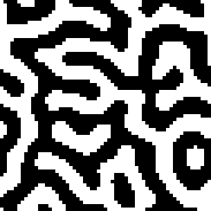 As the model runs, patterns may begin to emerge. Eventually, they stabilize. (Well, sometimes the model will run into an endless flip-flop between two states, but we could call that dynamic stability.) Even when it seems to come to a halt, the model is still running and executing the commands and carrying out the computations, but nothing is changing visibly. This is because for each and every cell the power of activators is equal to that of the inhibitors, so nothing changes.