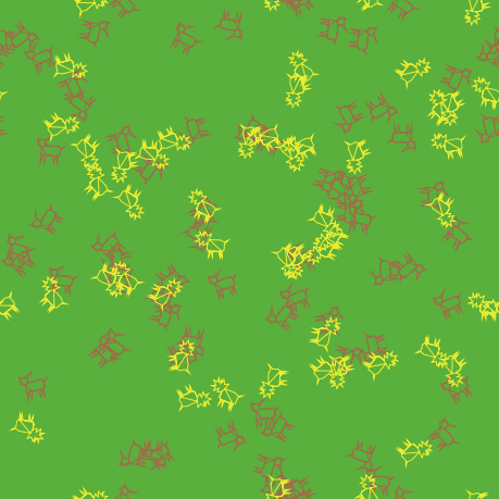 The second variation includes grass (green) in addition to wolves and sheep. The behavior of the wolves is identical to the first variation, however this time the sheep must eat grass in order to maintain their energy - when they run out of energy they die. Once grass is eaten it will only regrow after a fixed amount of time. This variation is more complex than the first, but it is generally stable.