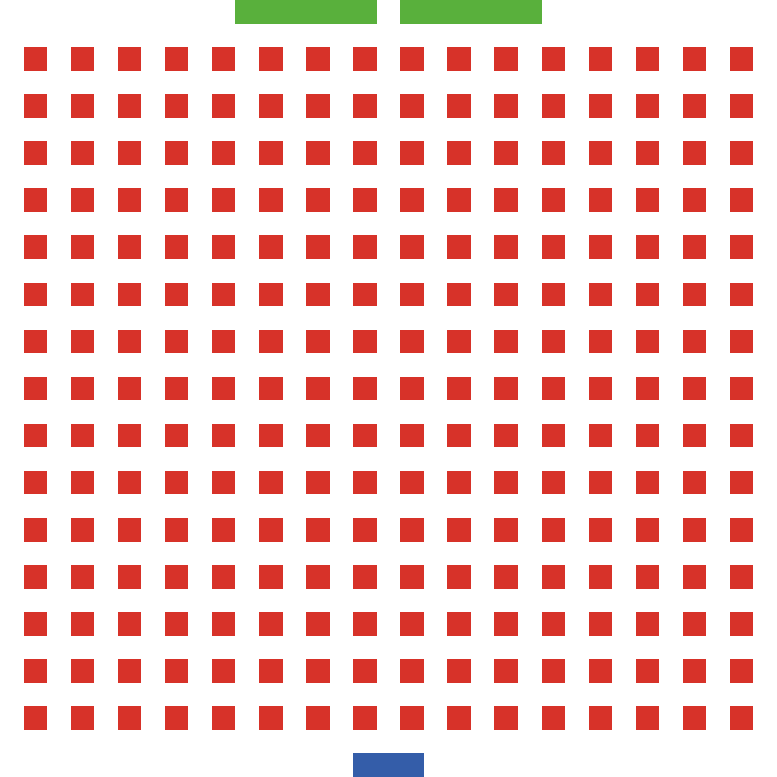 Students are able to sit in red patches. Learning assistants are able to sit in green patches. Instructors are able to lecture from blue patches. Asiles (white patches) are intended to be the only places LAs and instructors can move, however this is for later spacially realistic models.