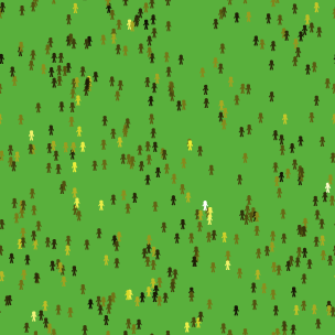 Initially, each agent is endowed with a small amount of wealth drawn from a constant plus a uniform random deviate (specifically, $90 + URD $0-21 which yields an expected value of $100 per agent). They are then set free to randomly roam about the environment.