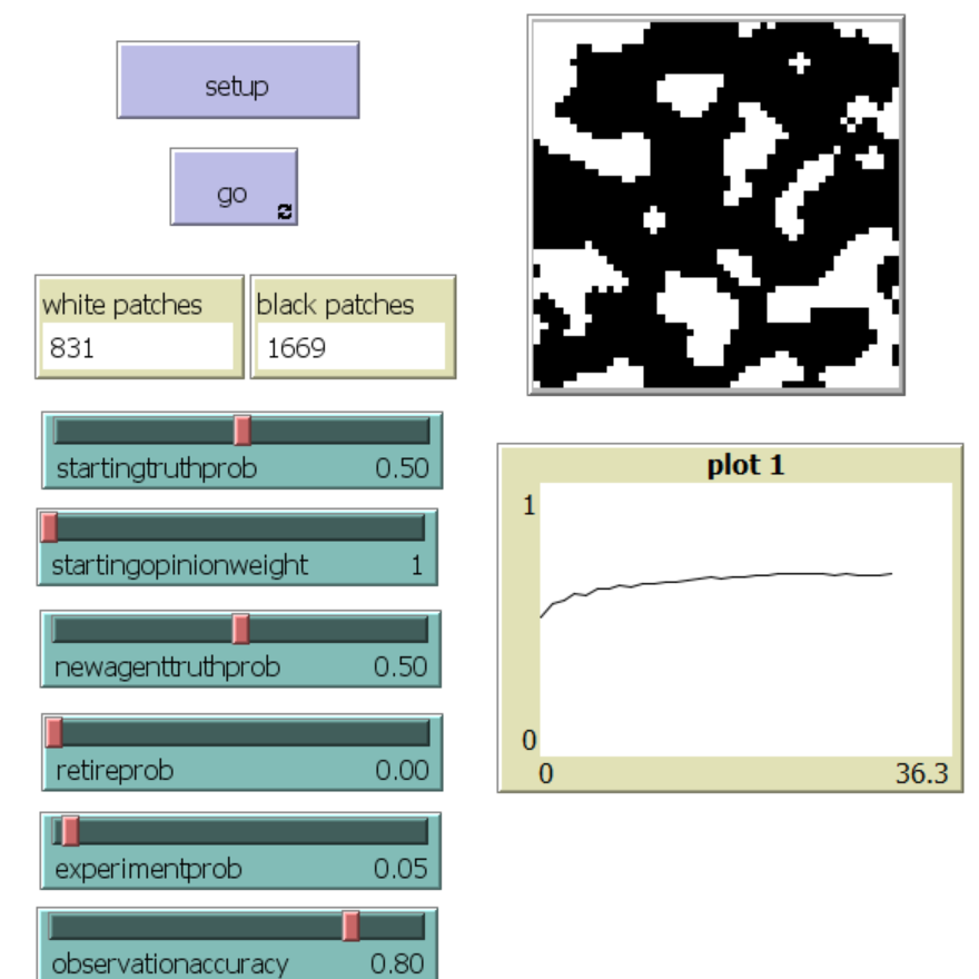 The 'startingopinionweight' slider determines the weight that any given agent is likely to place on their initial belief.