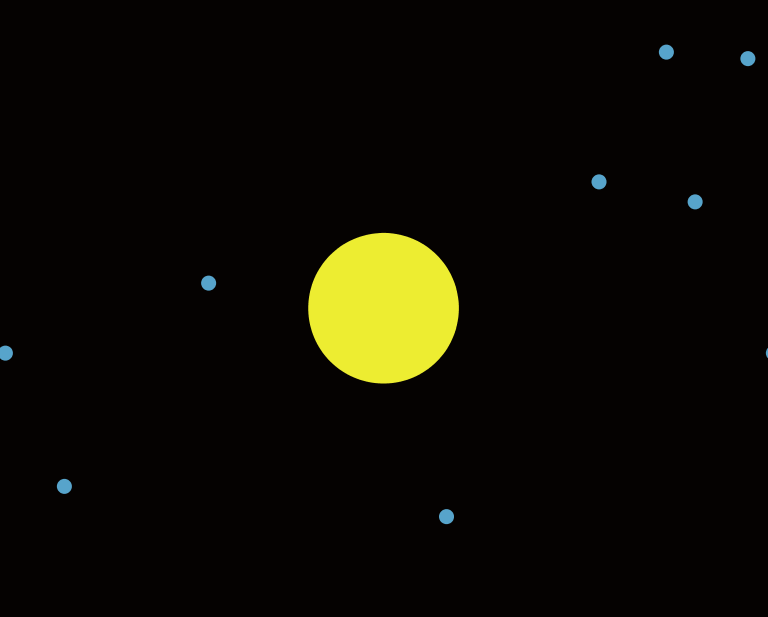 (the planets face the sun,turn 90 degrees, and go foward 0.1, then repeat that at each tick.)