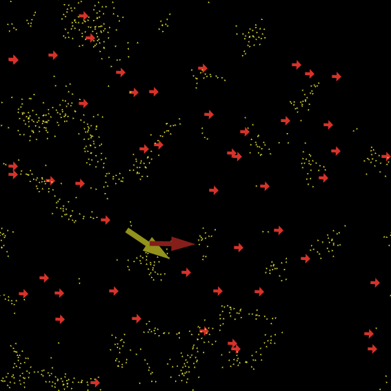 This model is strongly constructed upon the model of flocking (Copyright 1998 Uri Wilensky. All rights reserved.). While the changes are minor, their interpretation is interesting enought to show it on a model of itself. ++++++++++++++++++++++++++++++++++++++++++++++++++++++++++++++++++++++++++++++++++++++ The FLOCKING model is inspired by the Boids simulation invented by Craig Reynolds. The algorithm we use here is roughly similar to the original Boids algorithm, but it is not the same. The exact details of the algorithm tend not to matter very much -- as long as you have alignment, separation, and cohesion, you will usually get flocking behavior resembling that produced by Reynolds' original model. Information on Boids is available at http://www.red3d.com/cwr/boids/.