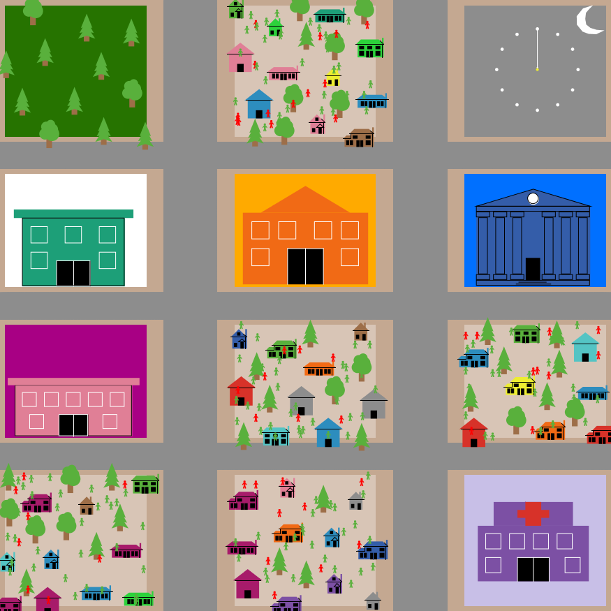 This is an illustrative simulation of the spread of COVID-19 in a theoretical small town. Each agent in this simulation represents a student in the grades K-12 in this town. This model uses a generic student schedule on a given weekday. The students start at their homes, can go to the library, cafeteria, gym, and also particpate in recreational activities by going to the playgrounds.