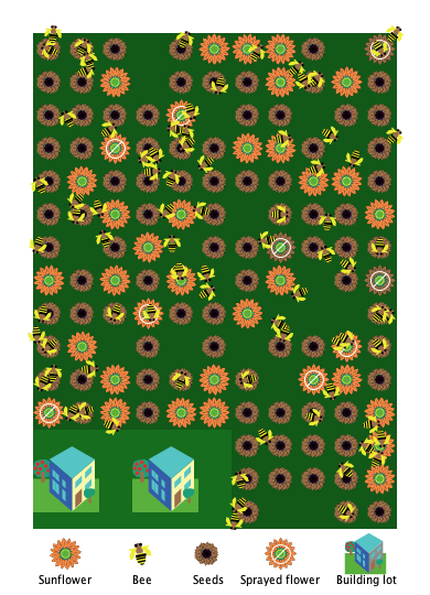 This model simulates the interaction of mutually beneficial between bees and sunflowers.