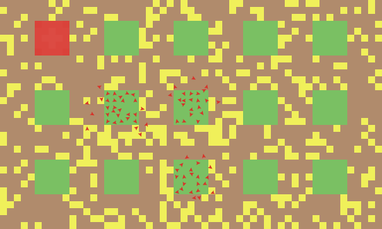 - "Movimiento Browniano": El agente elige una dirección aleatoria (un ángulo entre 0 y 360 grados). Luego, avanza una celda aleatoria siguiendo una distribución normal con media 0 y desviación estándar 1.